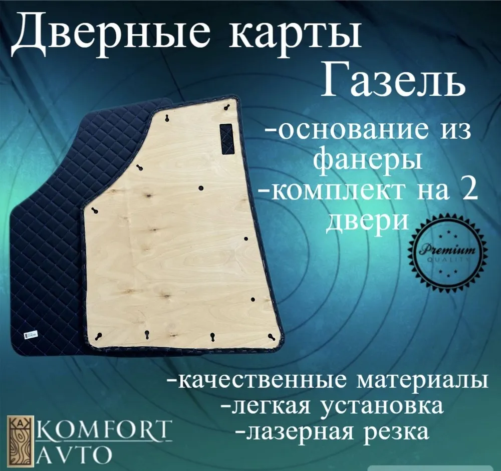 Обивка двери Газель РОМБ синяя нить (кожзам на картоне) (к/т=2шт)